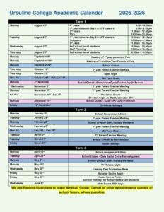 Ursuline College Sligo Academic Calendar 2025-2026
